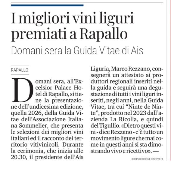 Rapallo: all'Excelsior i vini liguri selezionati da "Guida Vitae 2026"